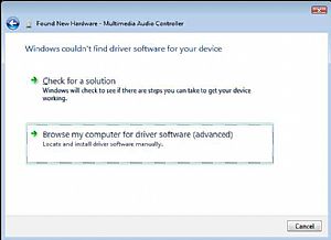3. The next screen will claim that Windows couldn’t find a driver. Choose “Browse my computer for driver software (advanced)”.