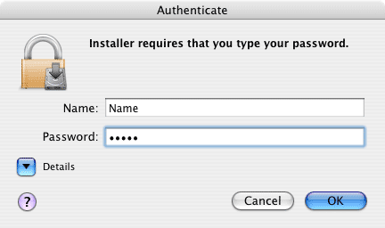 6. Enter your password in the Authenticate dialog box and click “OK”.
