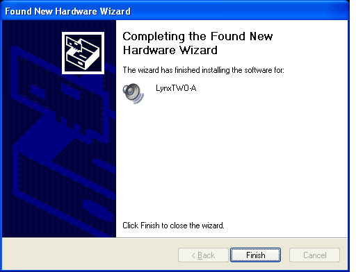 1. When you start Windows after installing the LynxTWO/L22 into your computer, the New Hardware Wizard will appear. Before using the wizard, double click the Version 2 driver file (L2WDMXXX.exe) to expand the required files and accept the default directory of C:\Lynx.