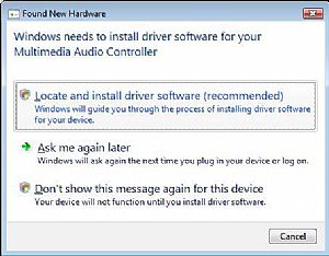 Then return to the New Hardware Wizard and select “Locate and install driver software (recommended)”.