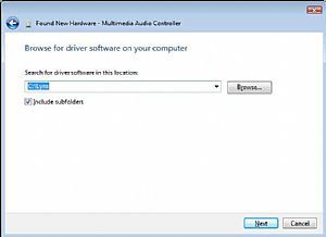 4. On the next screen, you will be prompted to specify a location for the driver files. Either click “Browse” and navigate to the Lynx folder on the C: drive, or type in “C:\Lynx”. Then click “Next”.